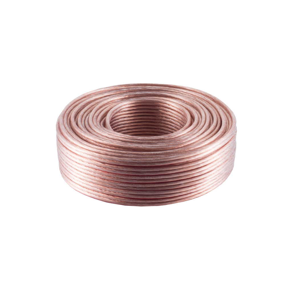 Use these cables to connect your loudspeakers with your HiFi receiver. Works with all types of installation types such as screw, clamp or solder connections. Speaker cables are usually provided as duplex cables, means with 2 electrical conductors, one conductor is for the positive pole and the other for the negative pole. · Diameter cable (ca.): 2.5mm x 5.0mm · Number of conductors: 2 · Conducter cross-section: 0.75mm² · Strands per conductor: 24 x 0.2mm² · Wire material: copper mixture · Wire type: stranded · Material cable sheath: PVC · Conductor identification for correct polarity · CPR-Euroclass: Eca · Color: transparent · Winding: palstic spool · Length: 100.0m